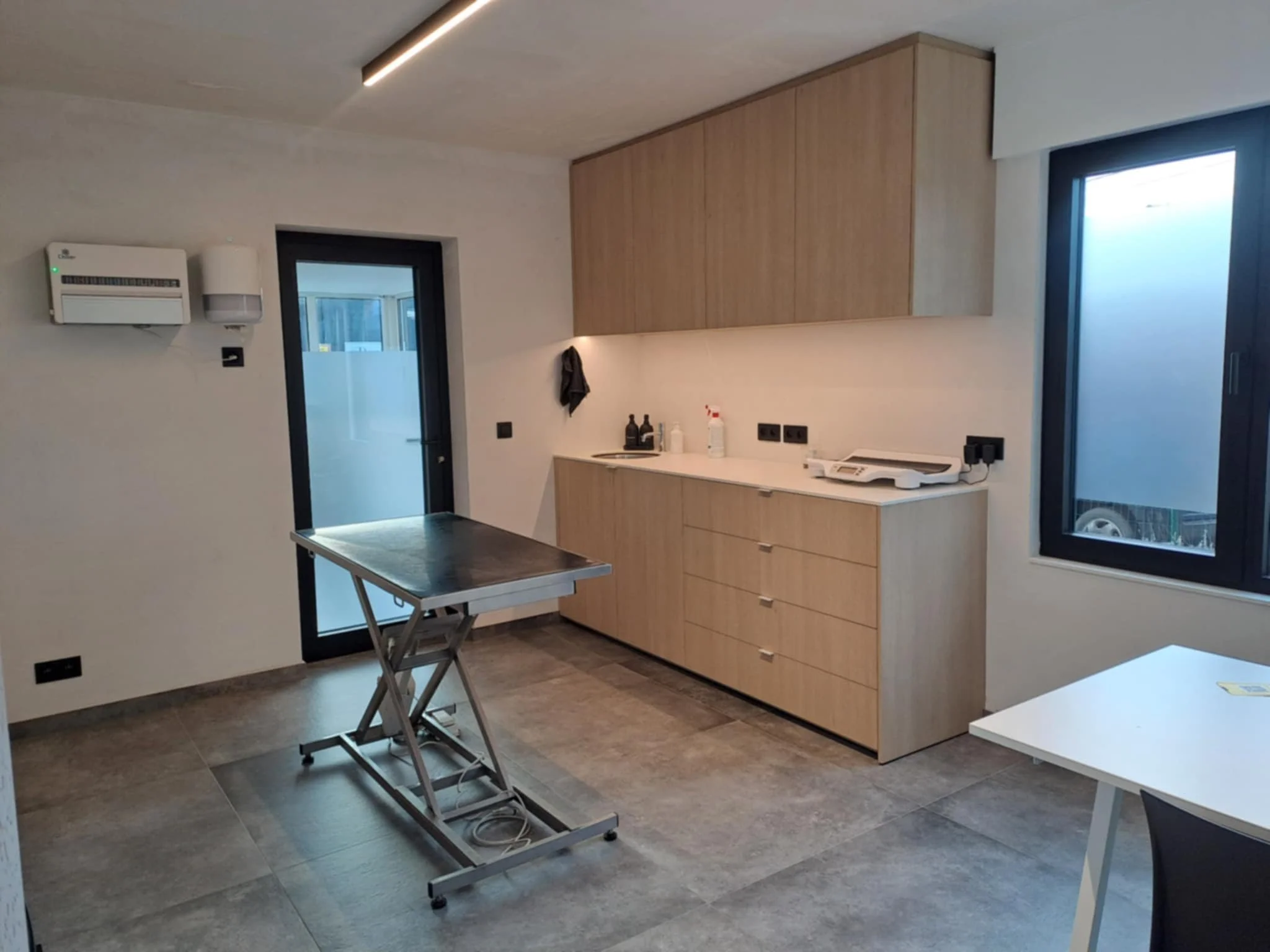 Ook de wachtzaal is gesplitst, links van de balie is er een aparte wachtzaal voor katten met een speciale kattenparking.